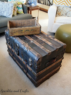 I am in love with what we found!!! I scored a vintage Pepsi crate for $10 and an antique wire basket for another $10. The trunk we are now using as a coffee table was an estate sale find from this fall – $50! I totally love it.