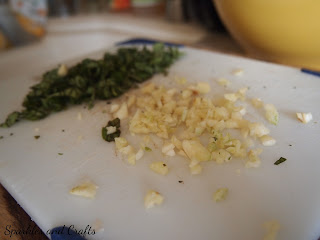 Stir the sauce around and add garlic, herbs, fresh tomatoes and parmesan cheese. If you like a little kick, this is where you would add chili flakes as well.